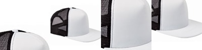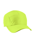 100% polyester front panel; Mesh back panels; 5-panel; Reflective sandwich bill; Reflective taping on mesh panels and closure; Two-piece hook and loop closure;