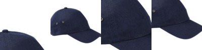 100% lt weight cotton; 6-panel, unstructured, low-profile; Sewn eyelets; Self-fabric closure with brass buckle and tuck-in grommet;