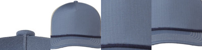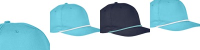 70% cotton, 30% nylon; 5-panel; Front panel lined; Half-moon mesh front panel insert; Semi-curved bill with contrasting rope; Contrasting snapback closure;