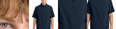 The structure of a traditional dress shirt collar meets the all-over comfort of a knit polo in this lightweight, breathable style. Made to perform, it also fights snags, moisture, odor and UV rays. 3.8-ounce, 100% polyester interlock Snag-resistant Moisture-wicking Odor-fighting UPF rating of 50+ (Solids), UPF rating of 30 (Check Prints) Spread collar with integrated, bonded collar stays 4-button placket Pearlized buttons Self-turned cuffs Straight, self-turned hem **